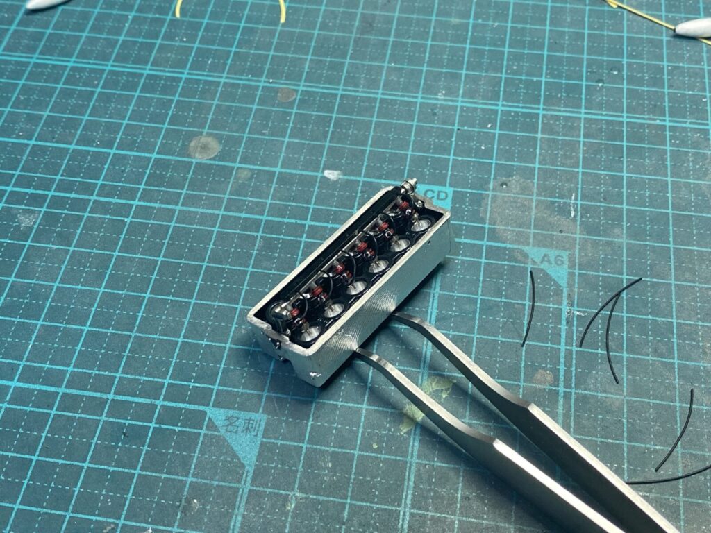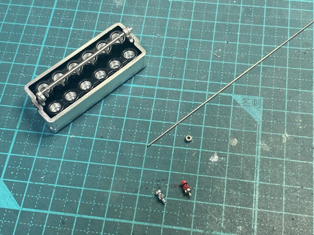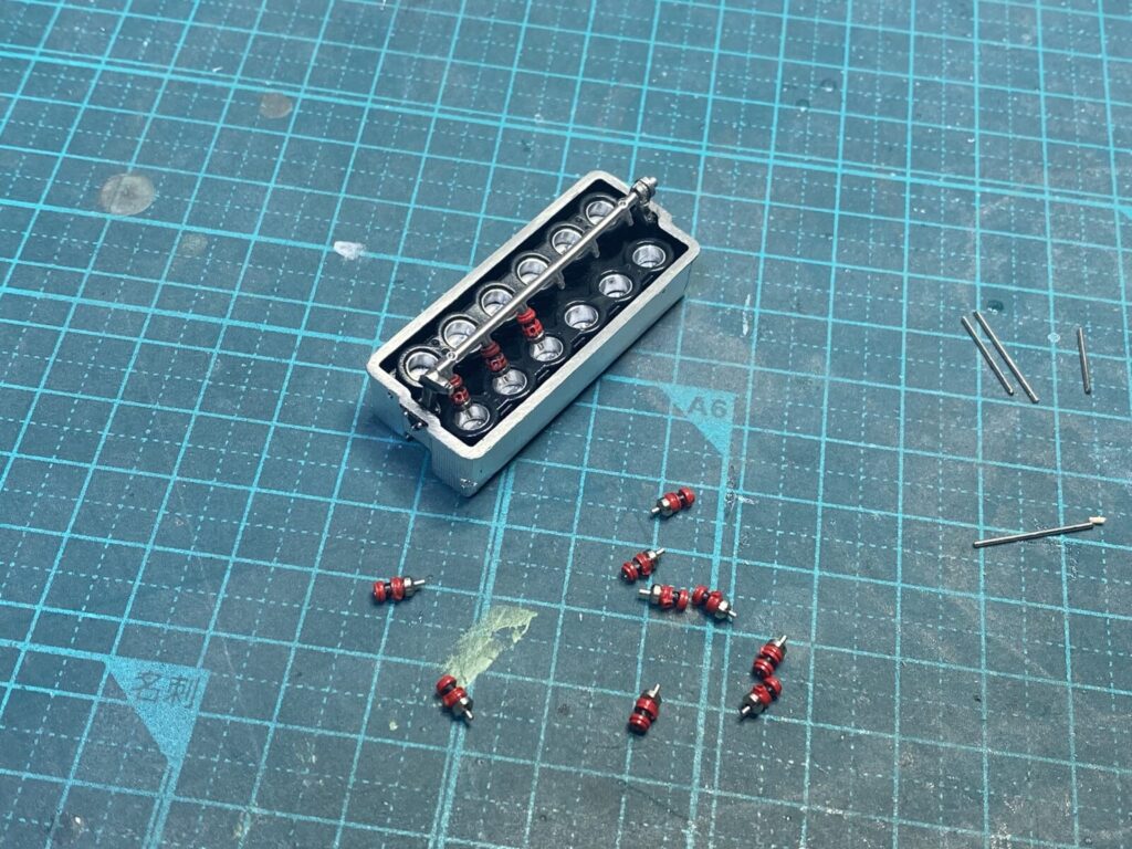 エンジン周辺の配線は、実車らしい質感を再現するために、高ディテールのアフターパーツ製コネクターを用いて製作します。
