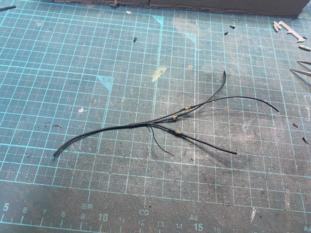 ディテールをさらに向上させるために、フューエルインジェクターへ配線を追加します。