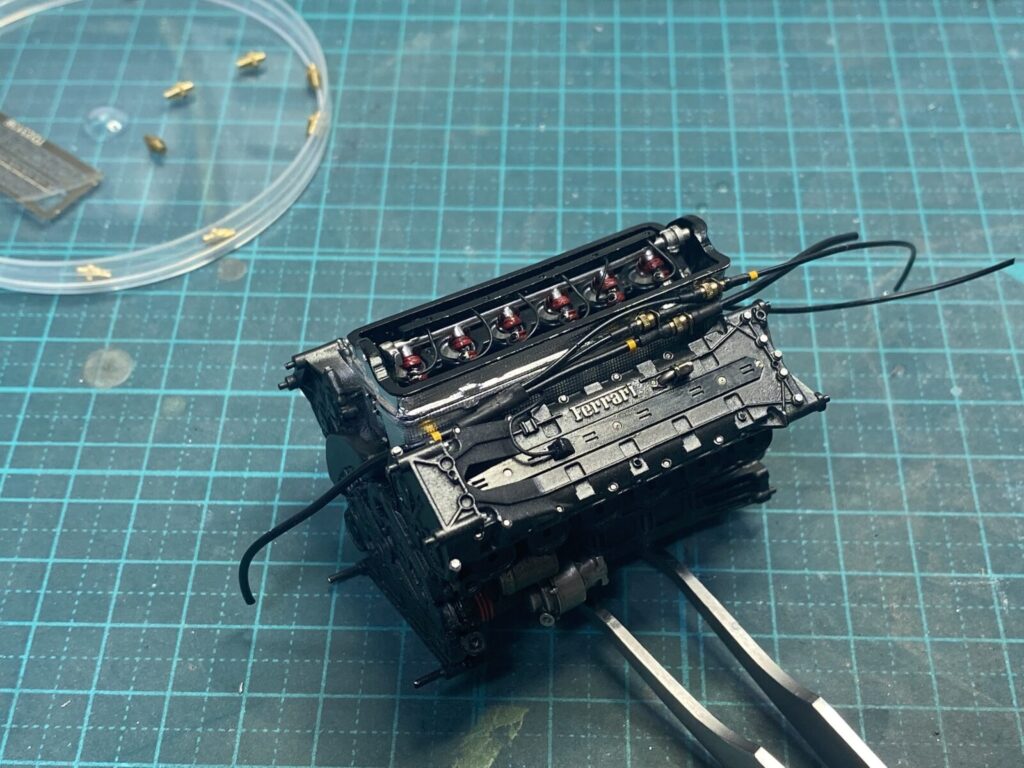Wiring is added to the fuel injectors to further enhance the level of detail.